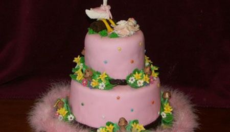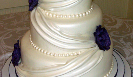 Wanted to try a new recipe and some new techniques (airbrushing) so I made this cake to take to work. It was a DISASTER from start to finish. First I accidentally hit the corner of a tier and broke a huge chunk off, so I decided I'd just make it a topsy turvey instead. The icing wouldn't smooth out, and my airbrush clogged and then sputtered color all over the icing. When I got the cake to work, we cut the first slice, and the rest literally disintegrated into miniature mountain of crumbs....oh, by the way, fresh blueberries really look quite nasty when baked into a cake. Definitely the WORST cake experience I've had so far. So glad it was for a free cake!