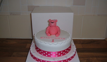 two tier blue and lemon fondant iced wedding cake with fondant butterflies and hand made ribbon with bow. the flowers around the bottom are real. :)