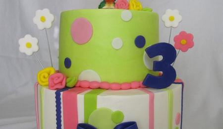 This cake was made for a MOMS Club celebration at a nature preserve. It was almond yellow cake with raspberry filling, iced in vanilla buttercream with fondant accents.