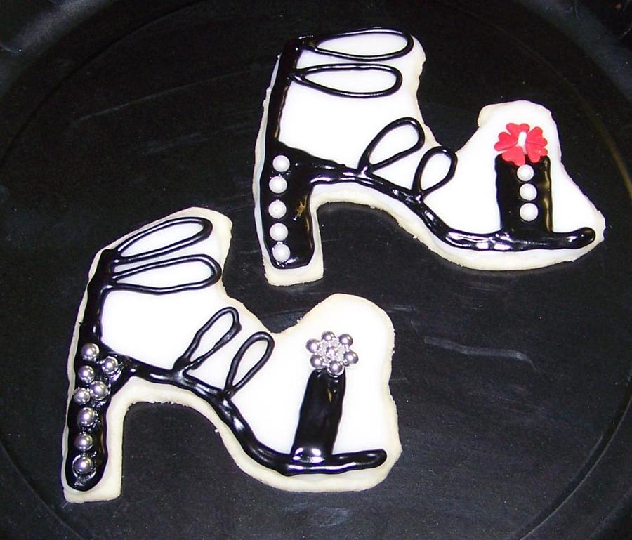I made these as part of an order of shoe-themed cookies! Now I want a pair for real... :) NFSC with glace. I free-hand cut the cookie dough into roughly the shape I wanted!