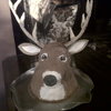 I made this for father's day. Chocolate cake w/ mocha filling/frosting (conveniently brown). Antlers, ears and nose are gumpaste. Head is RKT.