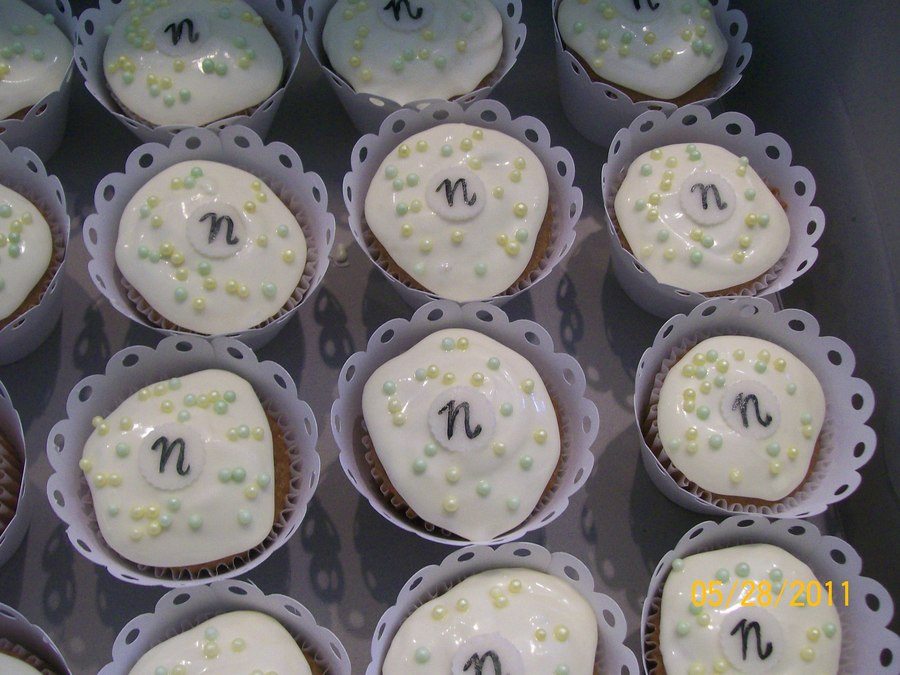 Monogrammed cupcakes with cream cheese glaze for the bride to be.