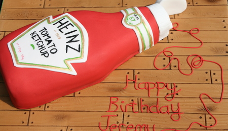 For a tea drinker's 50th Birthday, teapot and mug hand carved cakes sitting on top of a single tier wonky cake