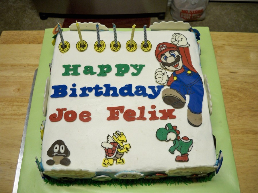 Made this cake for our cousin's 6th birthday. Cake is covered in bc. The letters, coins (under candles), and all figurines are made of tinted white chocolate. Each of the four sides have different figurines also made with tinted white chocolate.