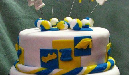 This was a cake made for my son's baseball team. Bottom was carrot cake with cinnamon buttercream and the top was peanut butter cake with peanut butter cup fudge filling. I'm still trying to get the topsy turvy thing down....LOL!!!
