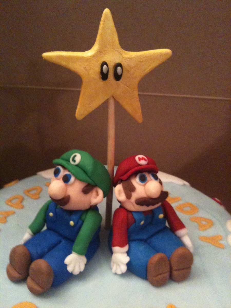 Loved making the 3D Mario and Luigi from fondant, and all the other characters and design elements on the side of the cake. The birhday boy loved it...and wanted to eat M&L as soon as possible! ha ha ha