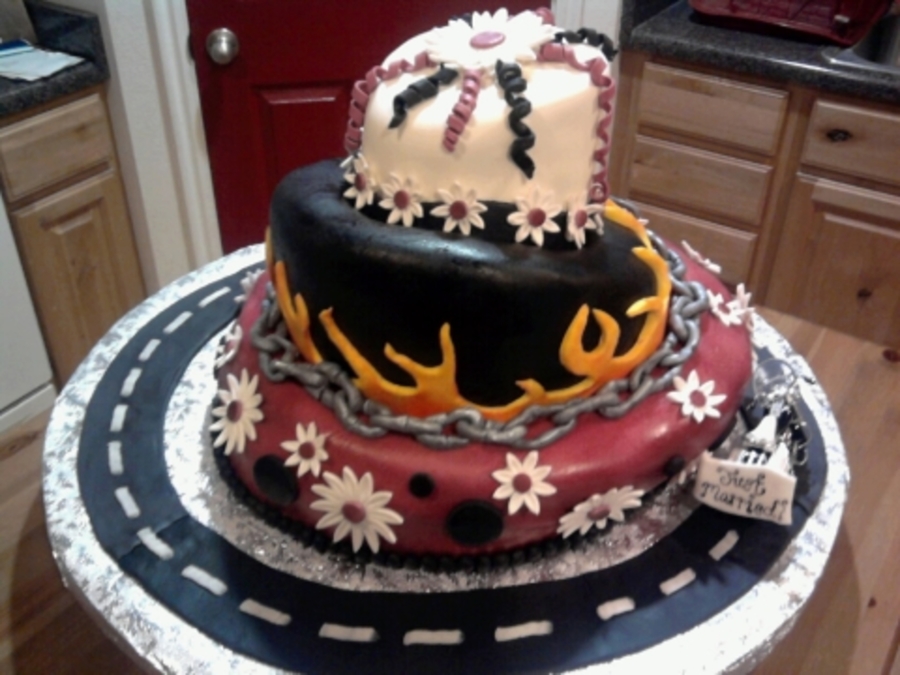 mild topsy turvy covered in mmf. all decorations are mmf except for gumpaste flowers