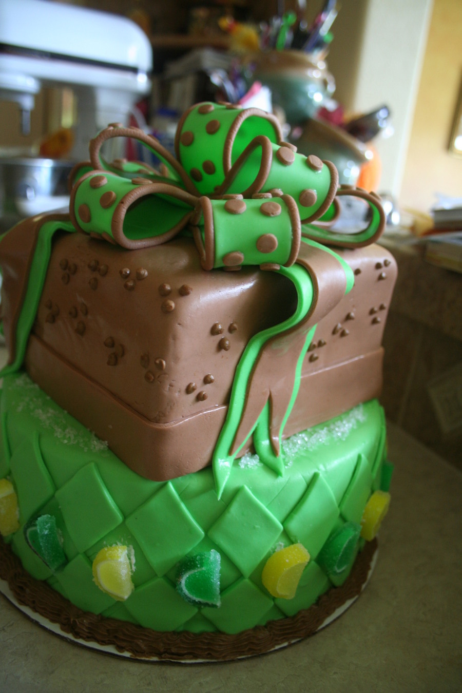 This was a surprise birthday cake for a friend from college. Mud slide on the top and margarita on the bottom.