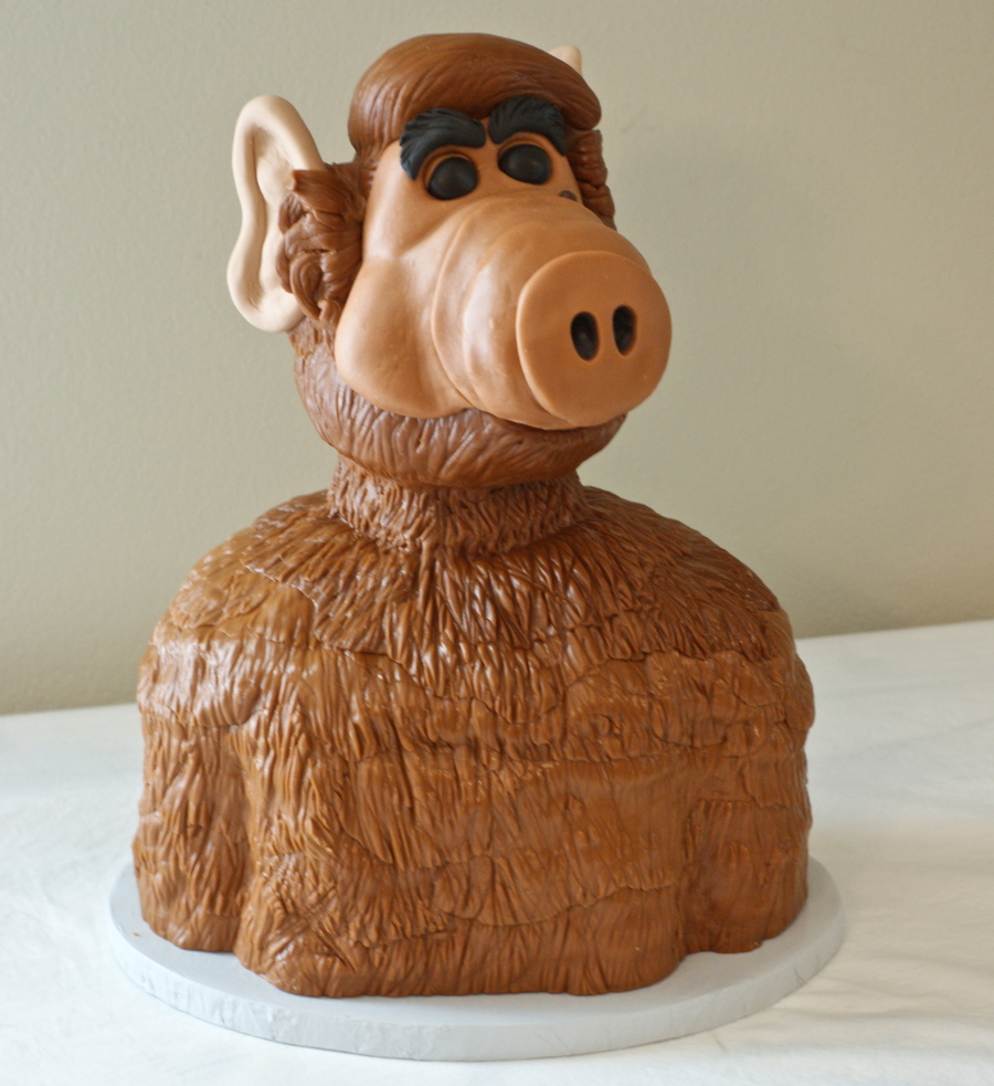Cake for a groom who loves Alf! White cake with chocolate filling. TFL!