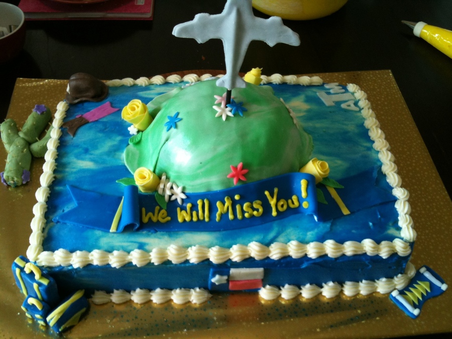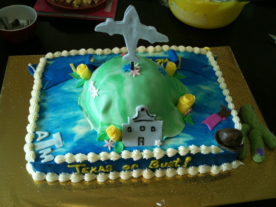 Cake for family PCS-ing (leaving-moving) from South Korea to Texas. I was given no direction on the cake. I did not know the clients who ordered nor the clients who it was for (small Army base community). I just knew they were moving to TX. So I tried my hand at some fondant accents for everything Texas! Have few fondant accessories etc. Not many times trying the rose. I wanted to try the airplane idea. Should have made it thicker. Found out later from a friend who knows them on fb who used to be here but now in TX, that the family are Longhorn fans. (I put Texas A & M on the cake) ahahah They still loved it. I look at it with needs work. ahahah