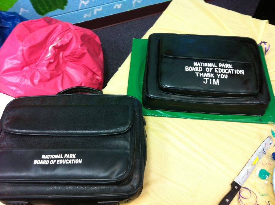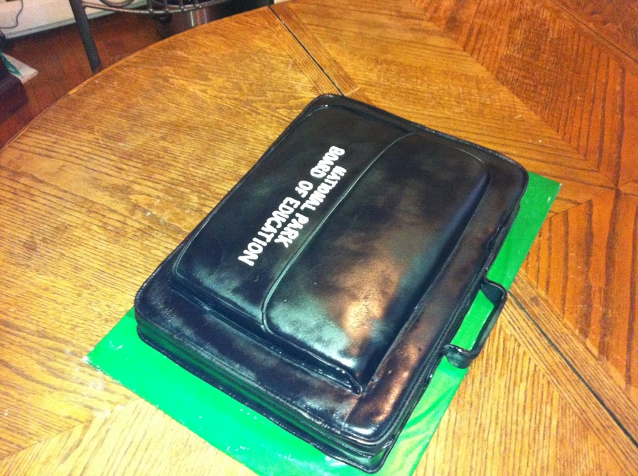 This cake was modeled after the gentleman's briefcase that he carried for 20 years as a member of the Board of Education.