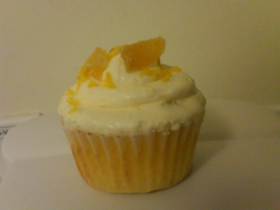 Lemon cupcake, ginger and lemon infused BC candied ginger and lemon zest garnish