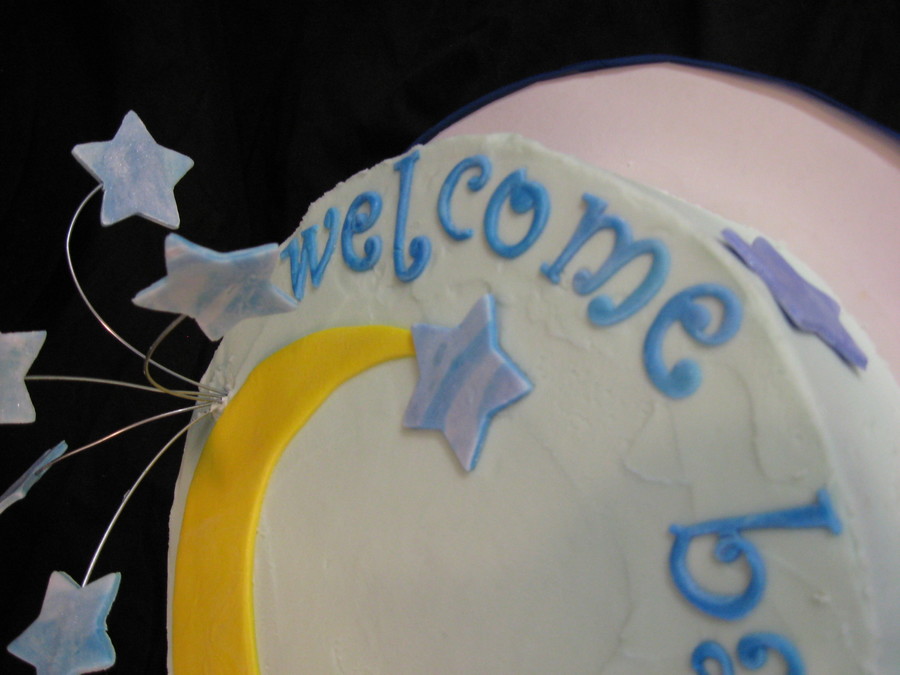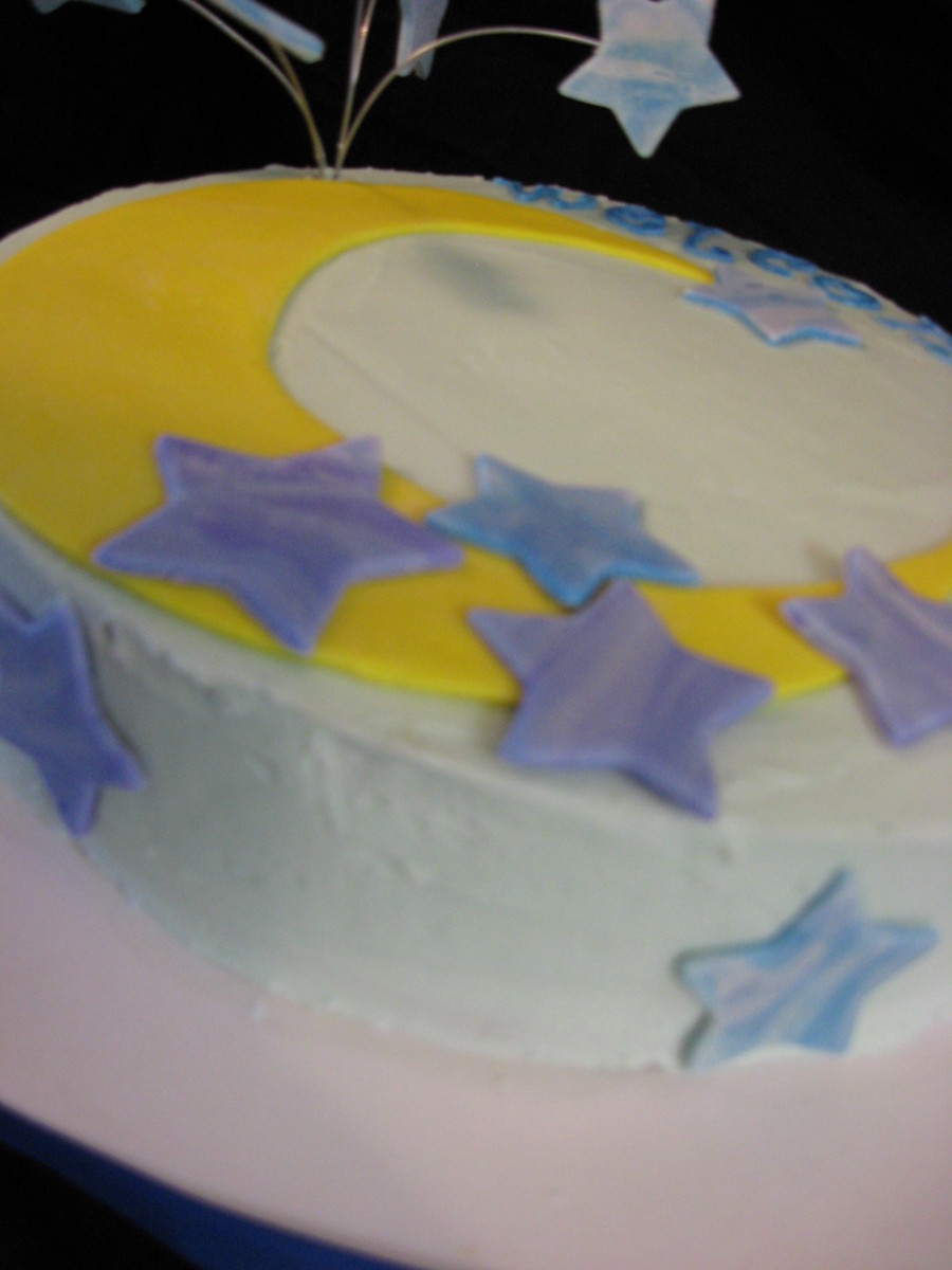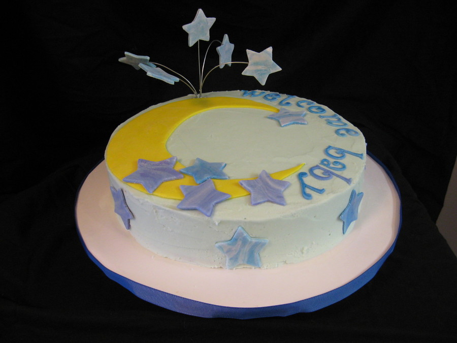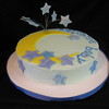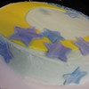 White cake with raspberry filling. Blue buttercream with 50/50 fondant gumpaste decorations. Sparkled up the stars and moon hard to see in photos. TFL