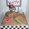 11" Chocolate fudge cake with chocolate buttercream filling and frosting, with gumpaste banner, Fox logo and border.