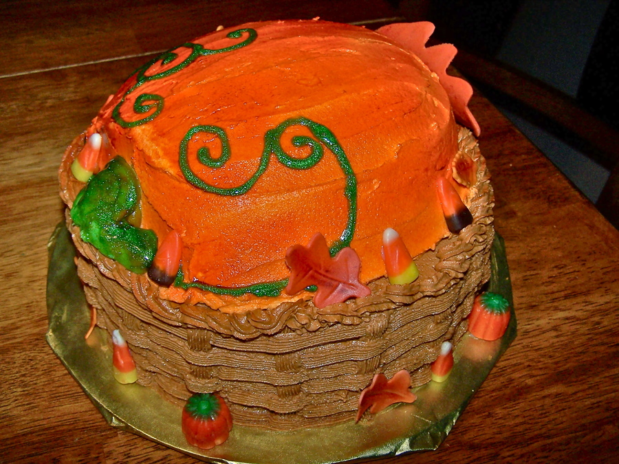 Pumpkin cake on an 8" round basket
