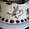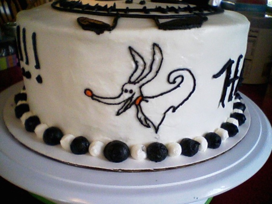 Chocolate Almond cake with Cookies and French Buttercream filling. Everything was fine until trying to put the circle on for Jack's face. It just went downhill from there. My freehand skill needs improvement. For Zero on the side of the cake, I originally tried a piping gel transfer, but unfortunately it just made a mess. I tried to repair, but it seemed like there was little I could do after trying to get the piping gel off. In the end just stuck with black icing to outline and transfer.