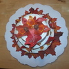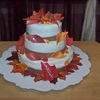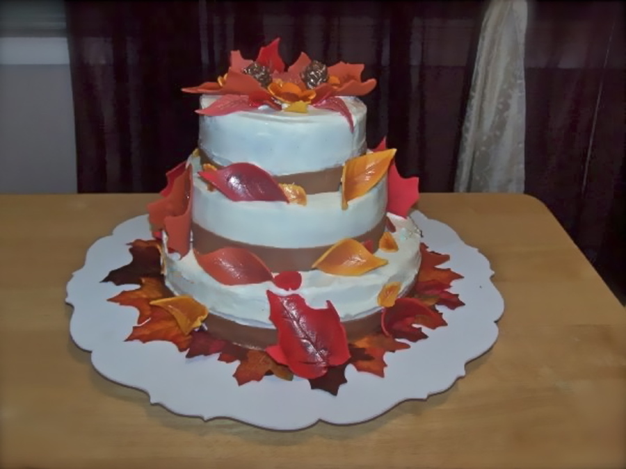 Fall wedding cake with fondant leaves and cream cheese frosting.