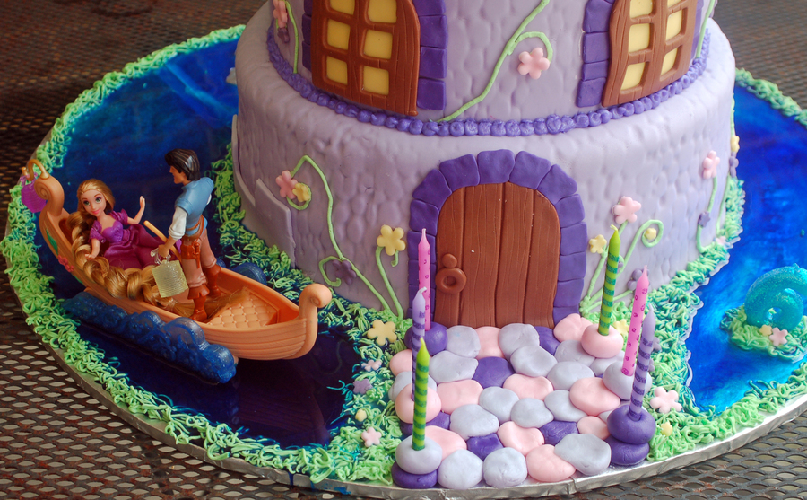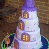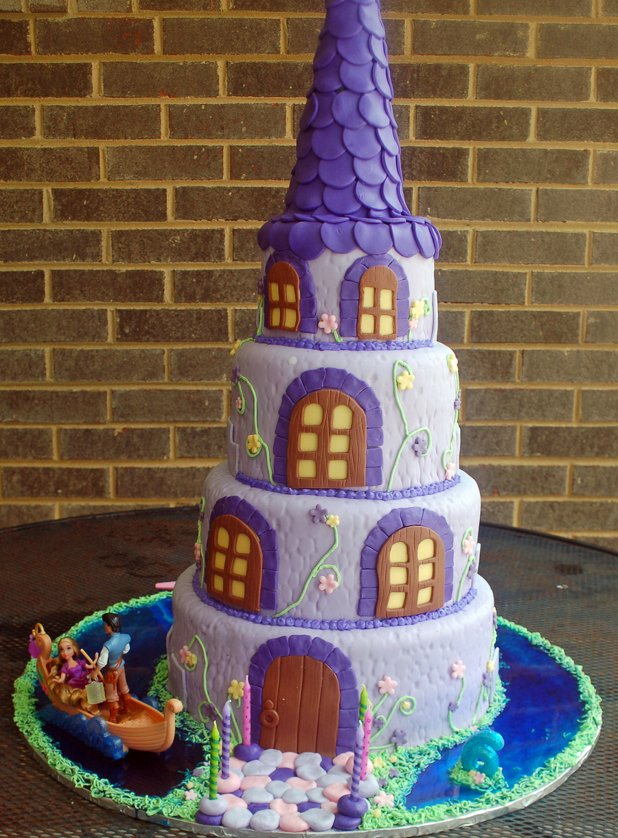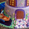 12 inch strawberry cake w/ cream cheese icing, 10 inch butter cake w/ butter cream icing, 8 inch chocolate cake with chocolate cream cheese icing and 6 inch orange cake with cream cheese icing. Covered and decorated w/ fondant. Vines are royal icing and water is corn syrup w/ blue food coloring. Made for my daughters 6th birthday and inspired by a cake I saw on Cake Central ;) Thanks for looking!!