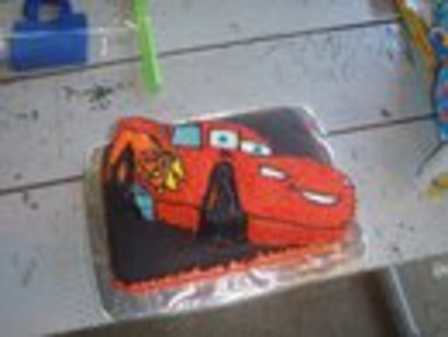 Lightning McQueen cake for my nephew's 2nd birthday. Bottom cake is white cake, white cream filling covered in chocolate fondant. Top cake is chocolate cake covered in buttercream.