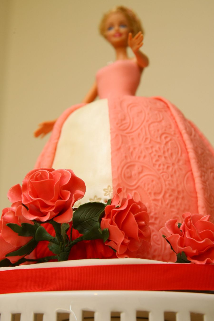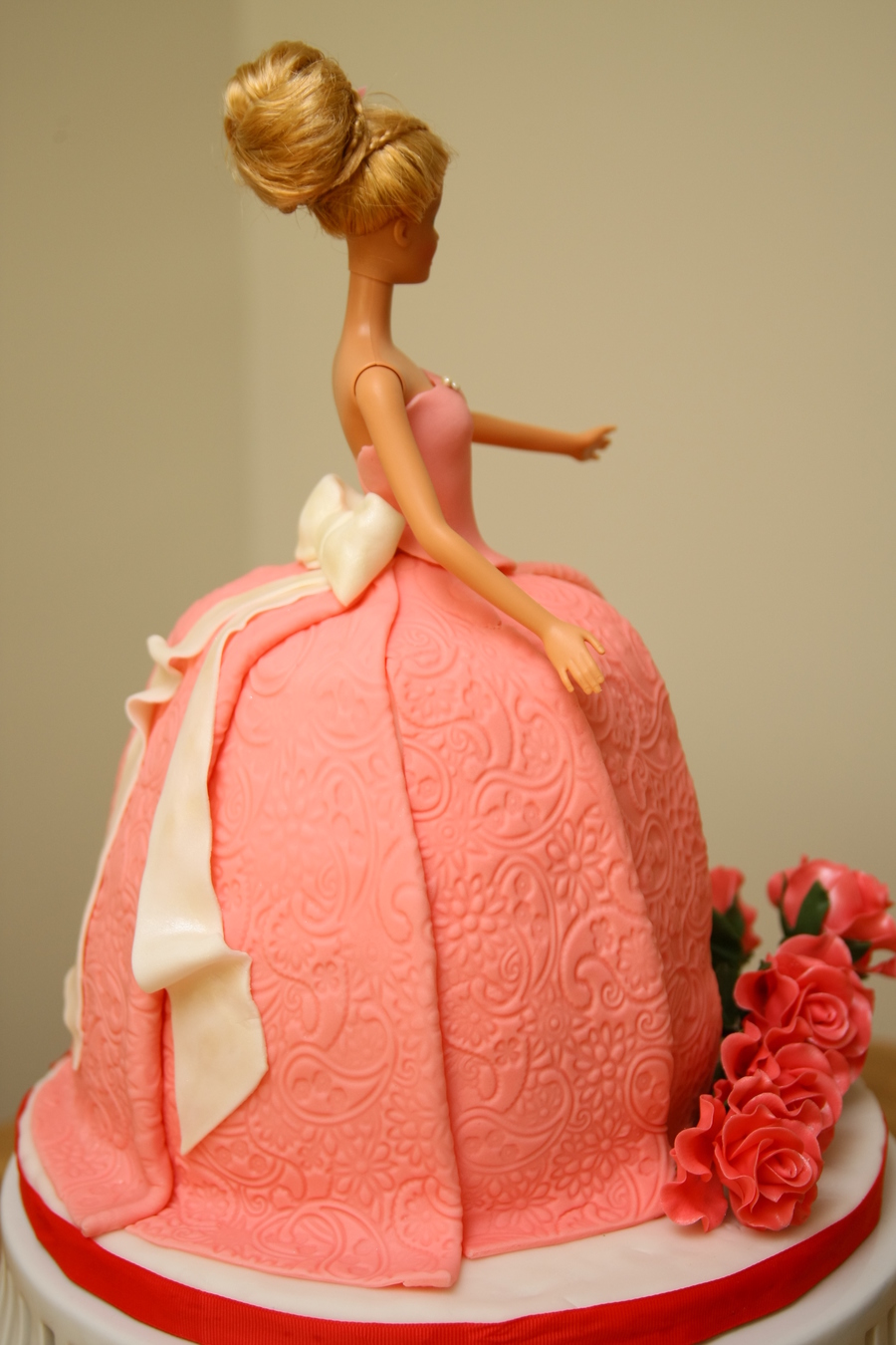 a gift for my friends daughter on her 7th birthday, buttermilk pound cake with buttercream icing, all made of fondant, exept the doll of course, my first attempt making a doll cake. i used pyrex bowl and a 6" cake pan, the doll is tiptoeing so it is so tall!