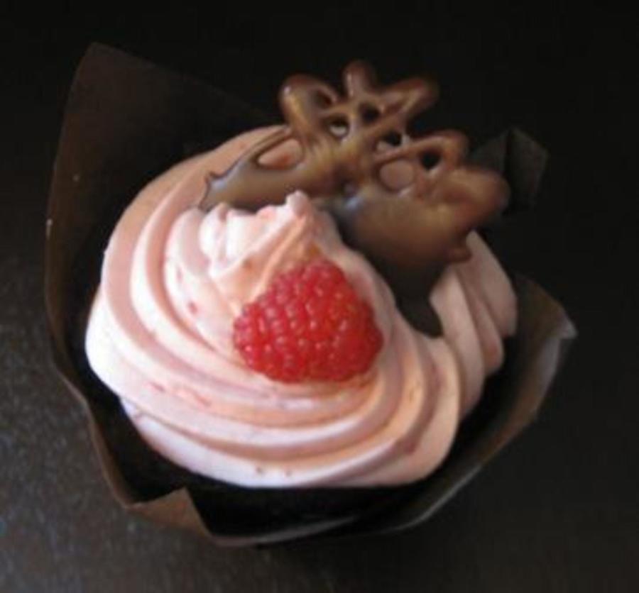 Devils food cupcake with Raspberry filling and raspberry buttercream made with raspberries right out of the garden. Chocolate swirl is made from semi-sweet chocolate. Love the parchment papers. Easy to work with and creates a beautiful finished product.