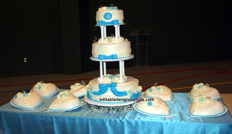 When the couple choose this cake the venue allowed for round tables, but they had to reschedule their date and ended up changing the venue which did not have round tables so we improvised to make this cake work. They loved it!
