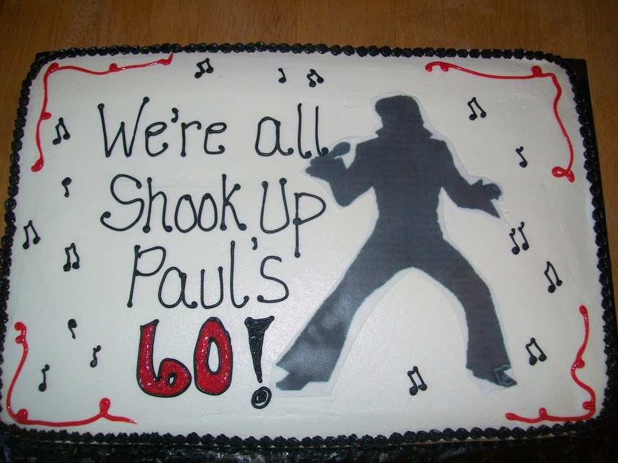 60th Birthday; Elvis is clip art; on edible image; marble cake; butter cream icing
