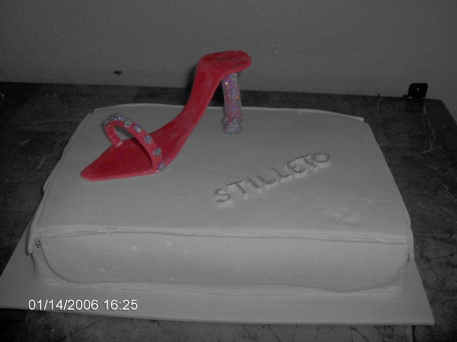 SquirrellyCakes on 17 Jan 2006 , 4:13pm Wonderful shoe kiddo, perfect. Try sifting your sugar first, sounds like a humidity problem.