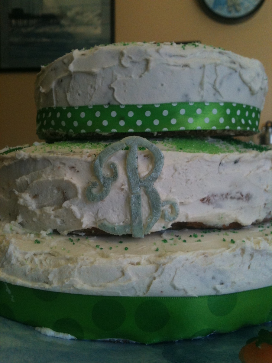 Green cake i made. Using ribbon (non edible) , sprinkles , and some love !