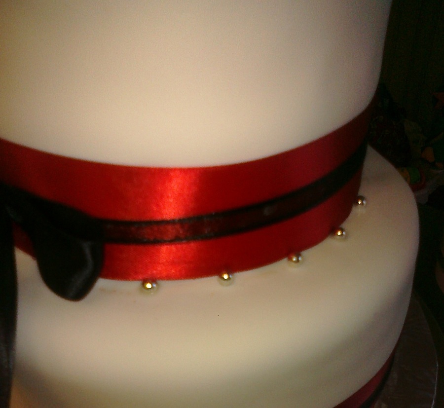The centerpiece cake of a three-cake display. Had trouble with bulges on this one, which I haven't had before. Red Velvet cake to match the color theme of the party.