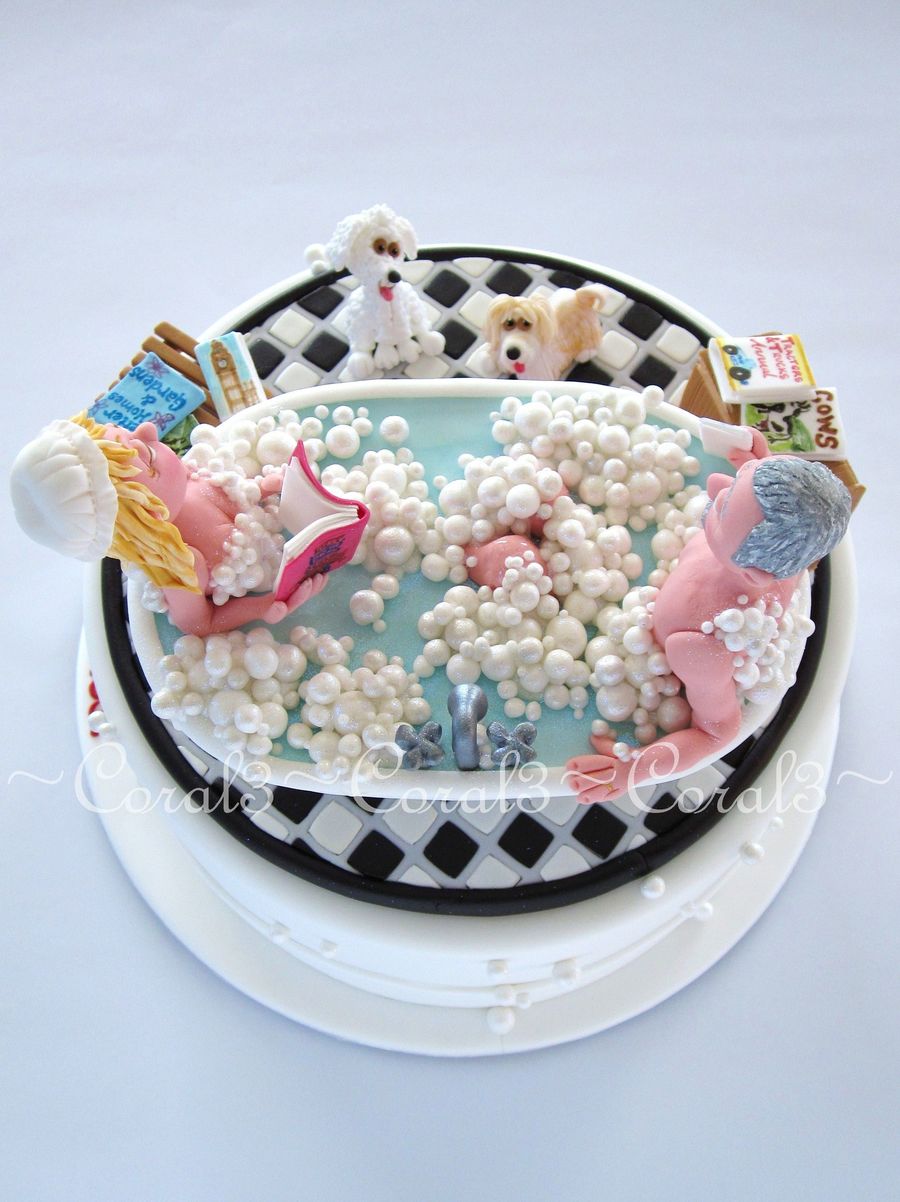 Fun 40th Anniversary cake...extra tall cake is dark chocolate mud filled & covered with chocolate ganache, finished in fondant icing. All decorations handmade out of fondant.