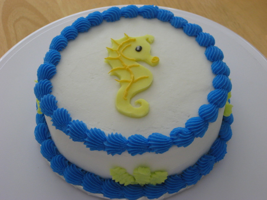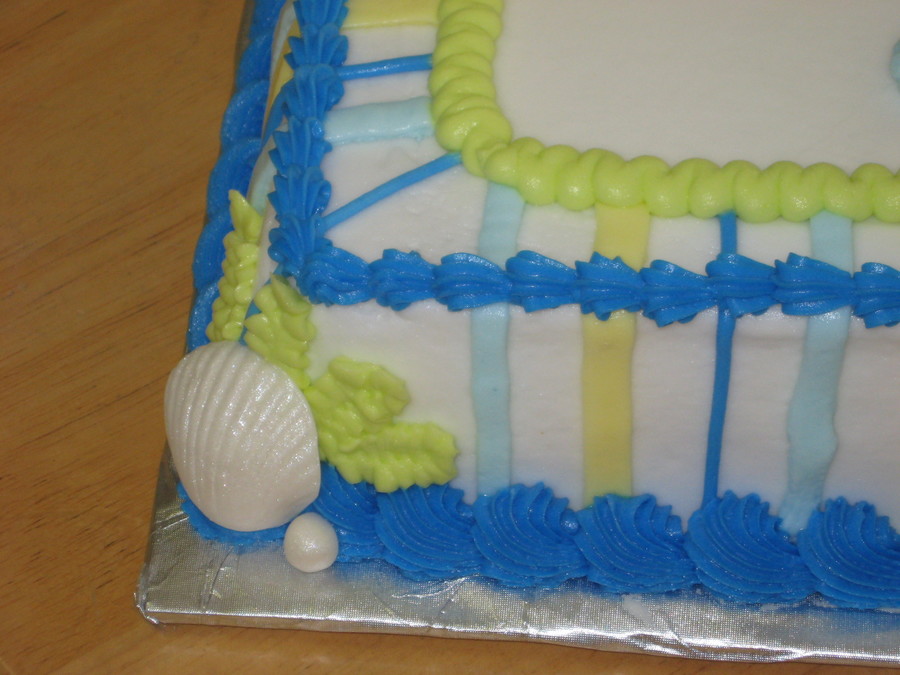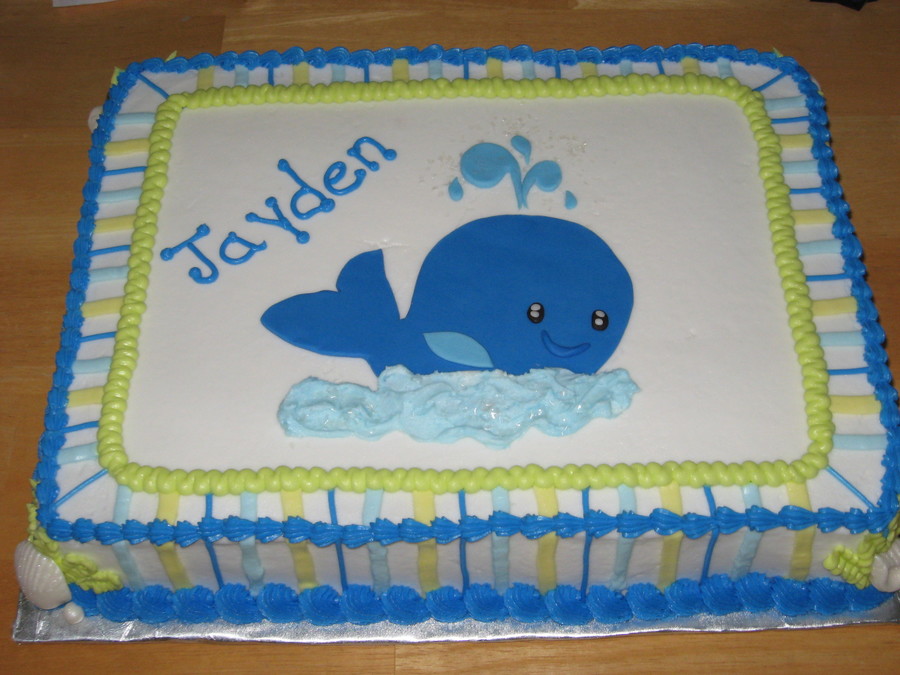 whale, seahorse and shells are fondant, everything else is buttercream. Cake was made to match the birthday plates. Also saw several cakes on this site similar to this one. Thanks for helping me to figure out how to do this cake. I can always find what I'm looking for on CC!!