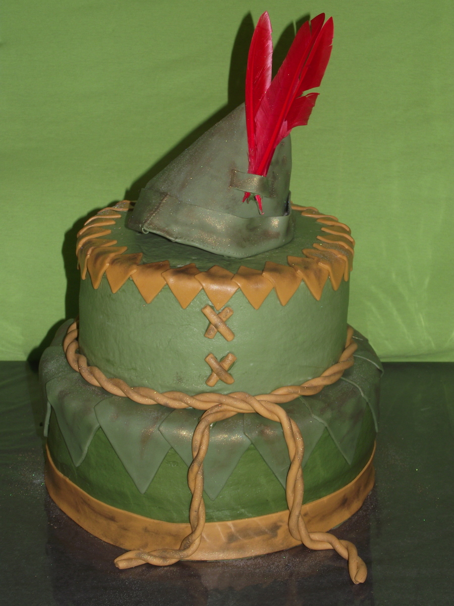 Peter Pan inspired cake. I got the idea from a Marine's cake I saw on here, the bottom tier was the pants, the middle tier was the marine's jacket and top tier was the marine's hat.....so, I adapted the idea to fit Peter Pan!