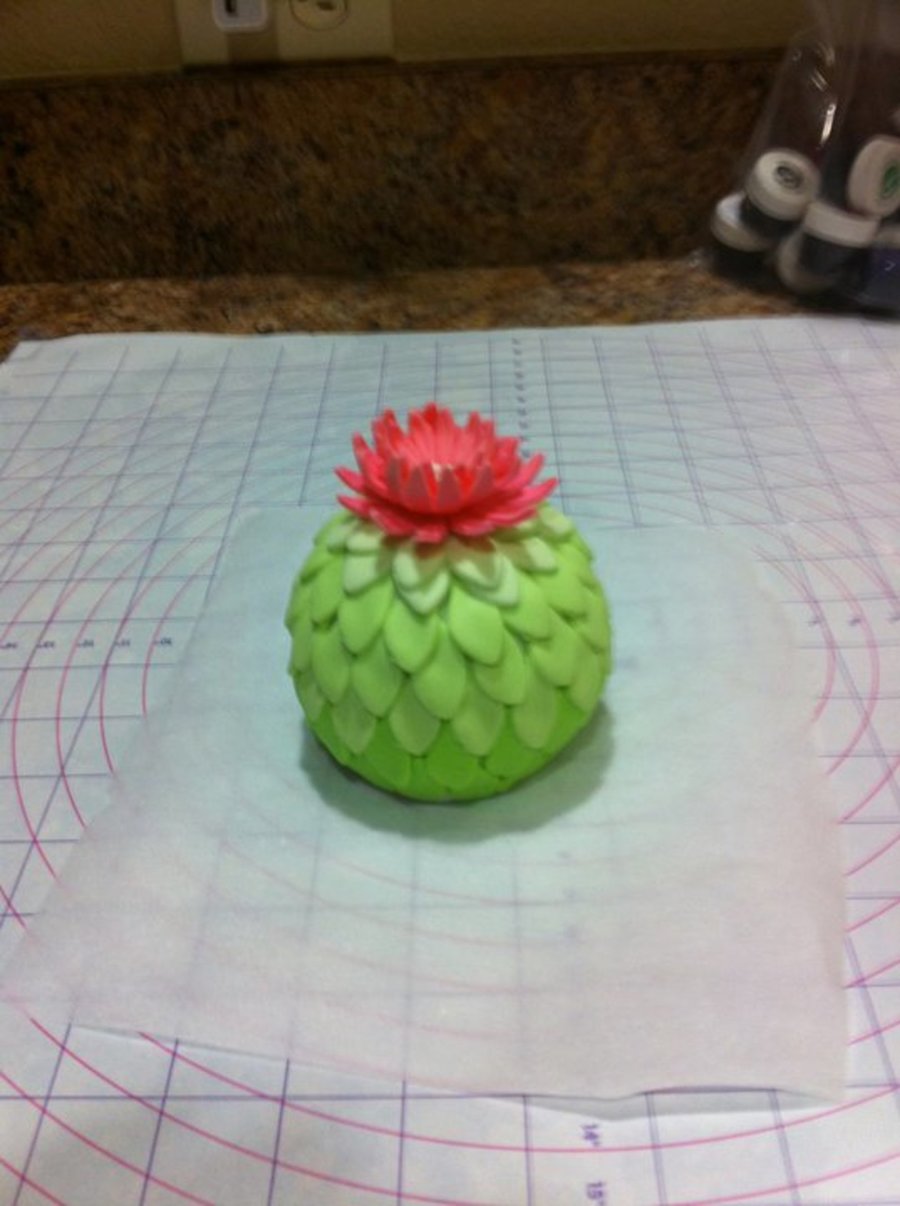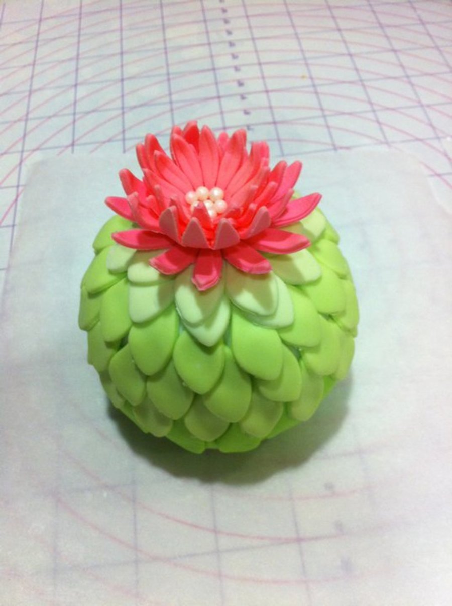 Playing with bauble cakes I made. This one ended up looking like a cactus. Added pink gumpaste flower I made a few days ago.