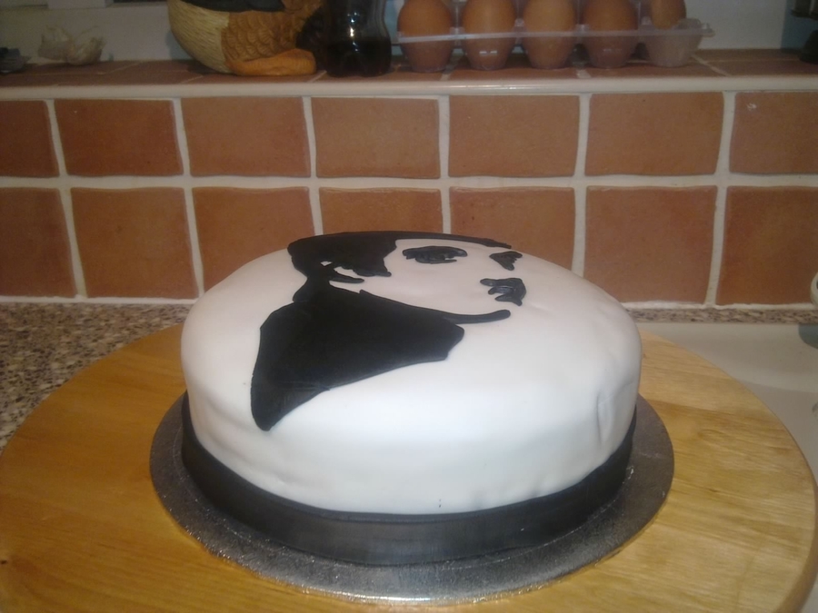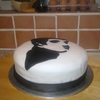 A chocolate cake covered in black & white fondant - all edible.