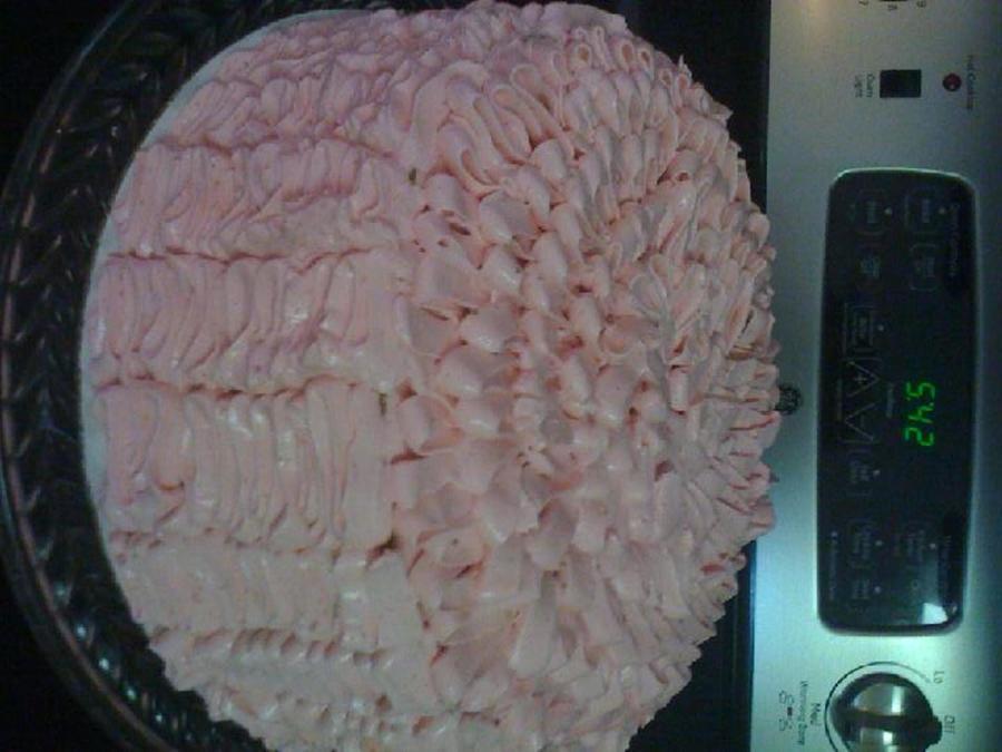 This was my first attempt at the Ruffle cake! The cake is golden vanilla with a Strawberry SMBC. It was soo delicious it melt in your mouth.. TFL!