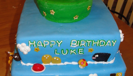 made this cake for my son's class for scoring perfect scores in there practice TAKS tests. half chocolate and half vanilla covered in mmf