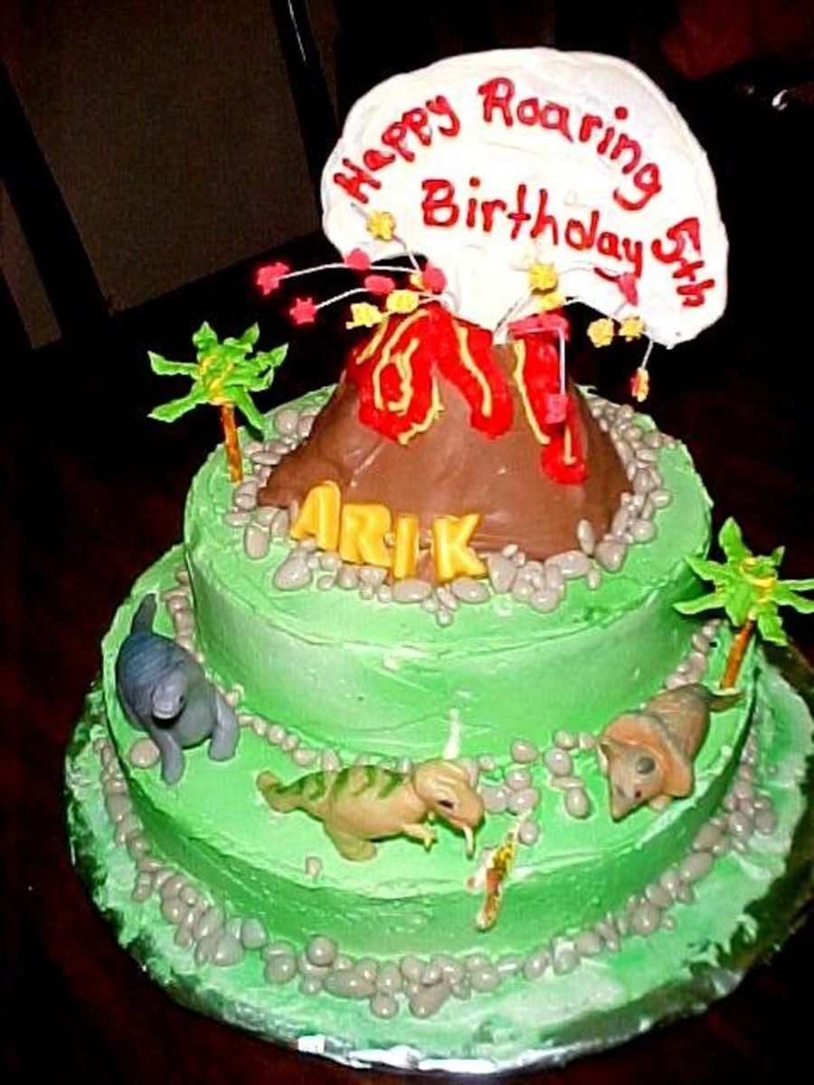 I made a dino cake with a volcano for my son's 3rd birthday and he loved it! Thanks for the inspiration! I made a little hole at the top of my volcano and used dried ice for effects...it was a big hit. Thanks again!