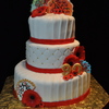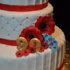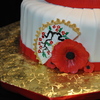 A special cake for my MIL's birthday. The fans are made of gumpaste and hand painted by my very talented sister-in-law. Thank you cakeinfatuation for the inspiration of the vertical pleating.