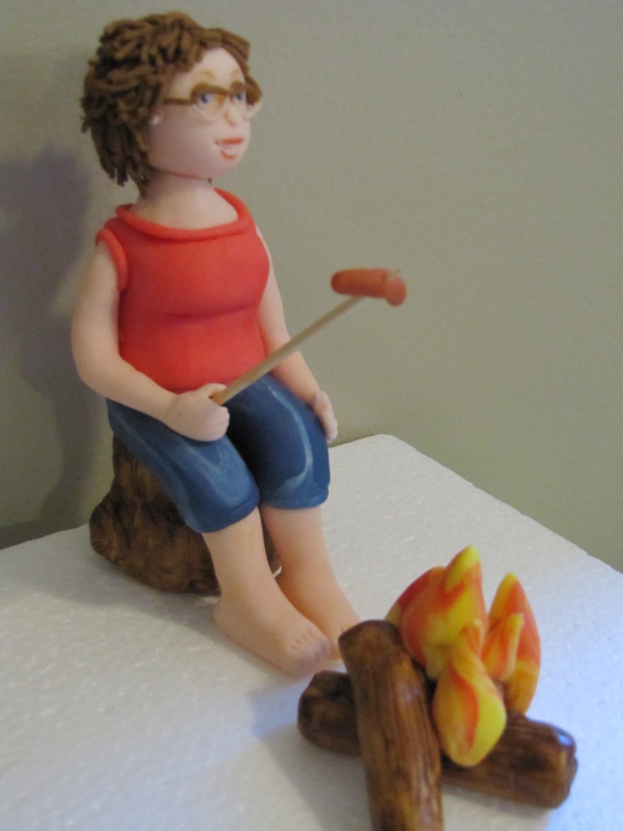 A friend of mine asked me to make a figure for her mothers birthday and asked the she be roasting a hotdog. It is made entirely out of fondant. Thank you for looking..