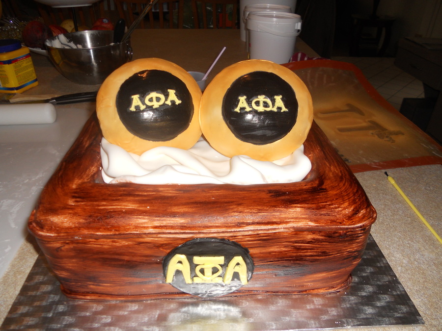 The order was for a fraternity logo and the fraternity cufflinks. Redvelvet with cream cheese filling.