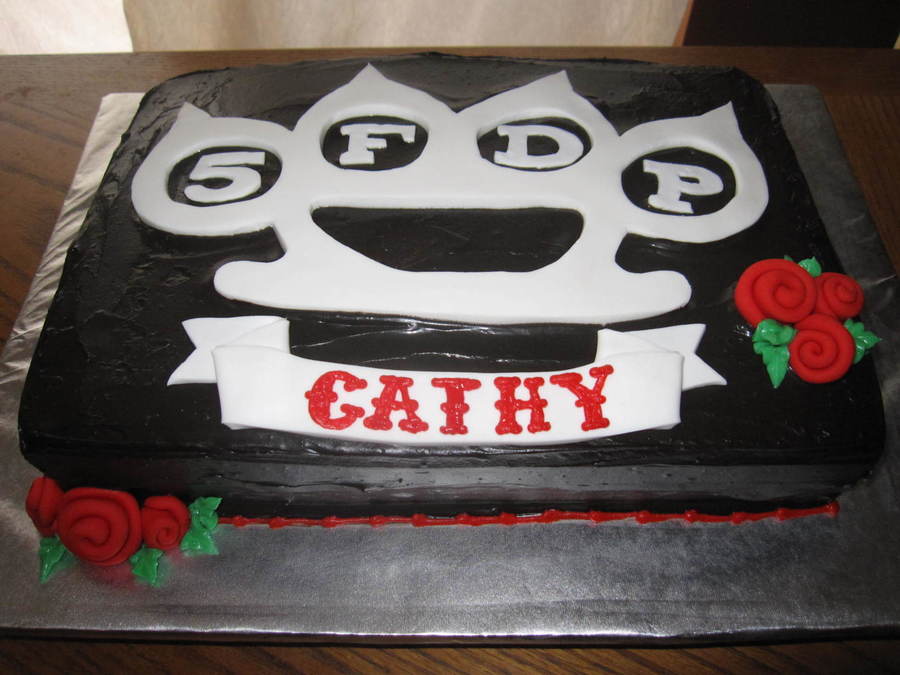 This is a cake I made for my SIL who loves these crazy bands...LOL. But this one is one of her favorites. Red velvet WASC with chocolate ganache tinted black. Decorations are fondant. Made to look like tattoo banner and roses. TFL