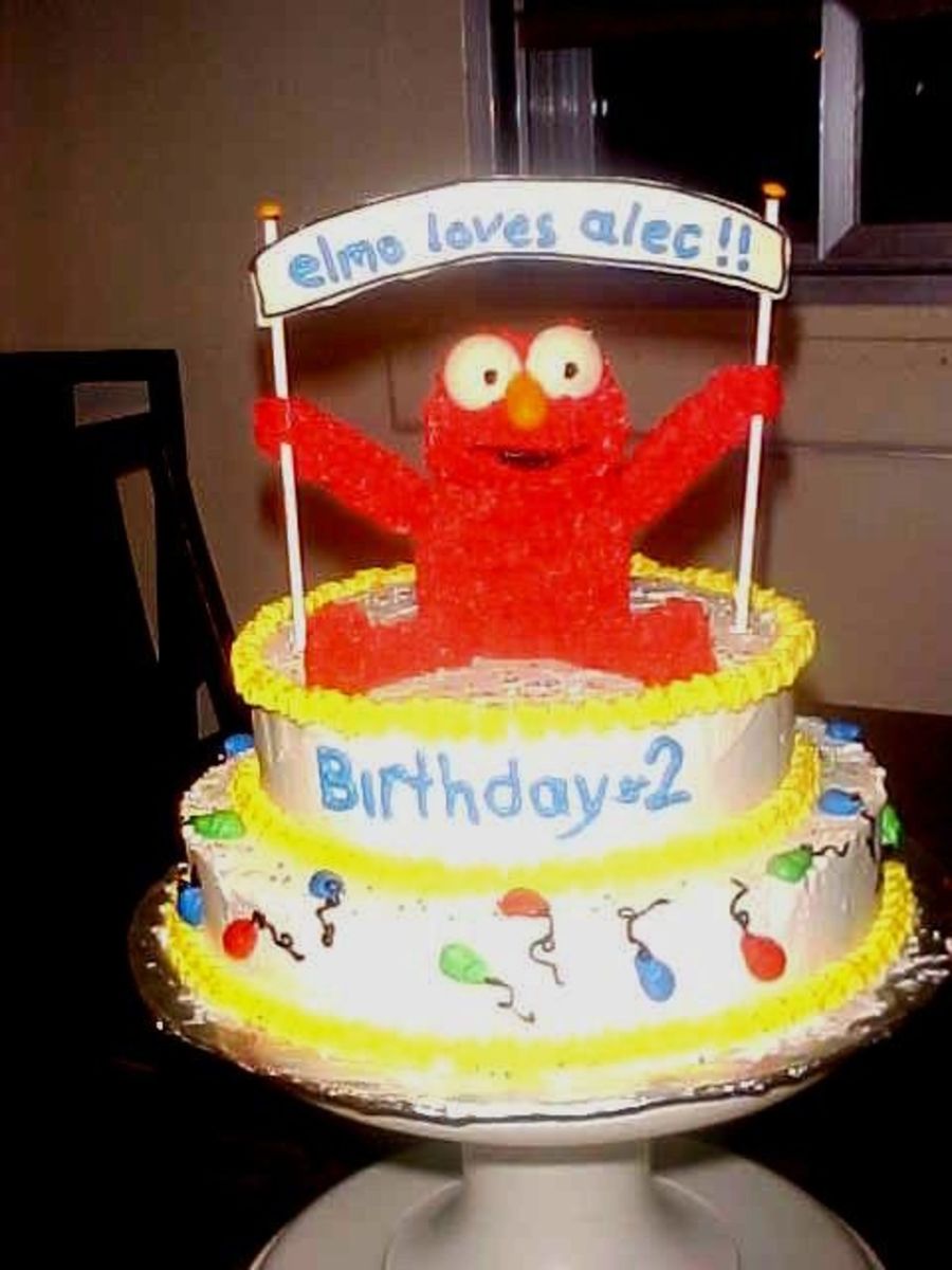 Here's ELMO,,, I made him out of the wilton mini stand up bear pan, the banner is made of candy melts. Isn't he cute?