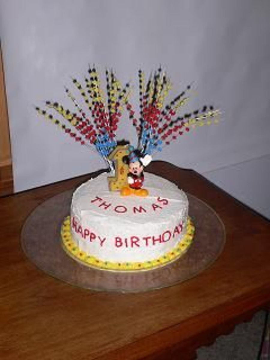 Thomas had two "first birthday" parties. This cake was for the actual date. I took the design from the cake I'd made for his first party and adapted it for an eight-inch cake.