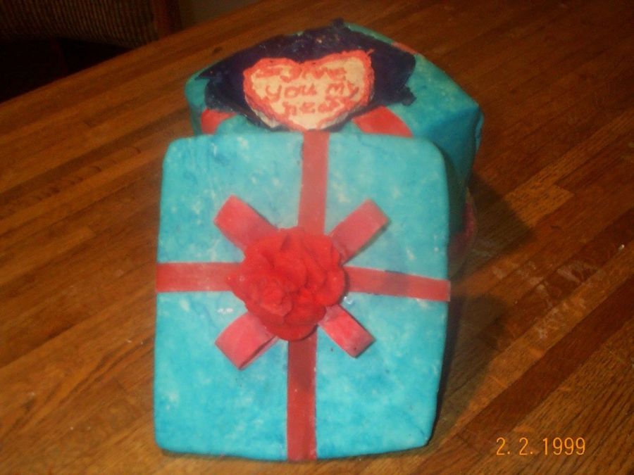 here is a view w/the top off revealing the heart in the box. The heart is also made out of strawberry cake.