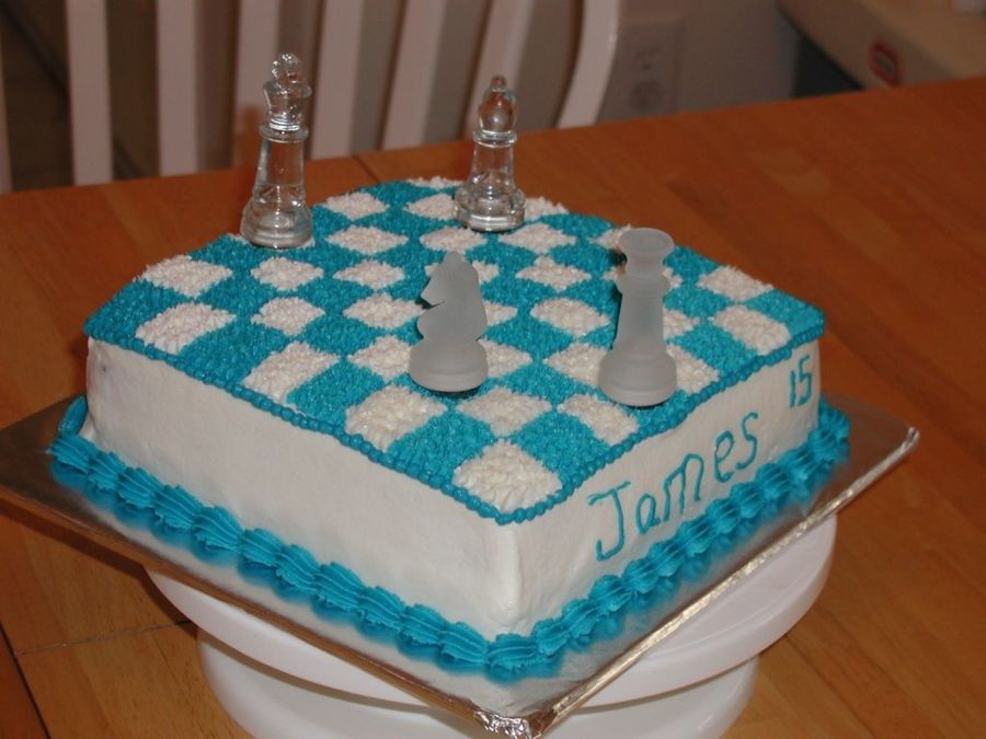I made this for my oldest son. I was going to make chocolate frosting but didn't have enough cocoa powder. I don't really want to use brown or black food coloring so I made it blue. It looks more like a quilt to me, but he was happy.