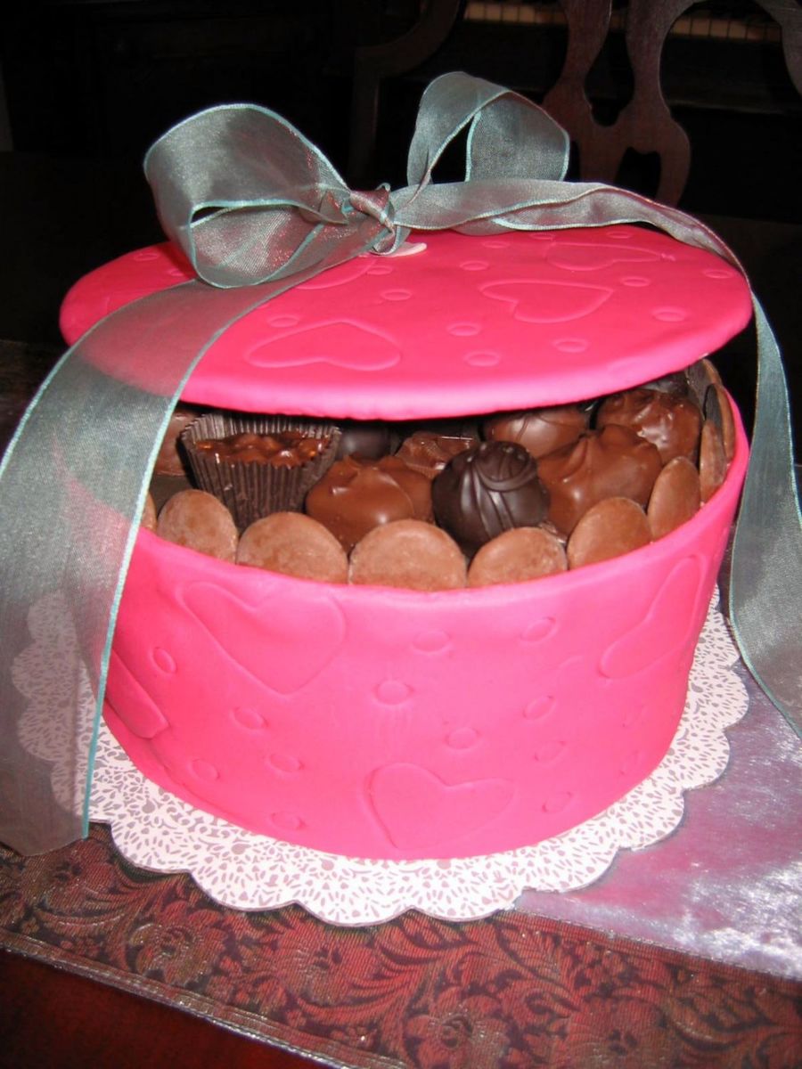 Did you cover the inside of the box (top of the cake and under the chocolates) with fondant?