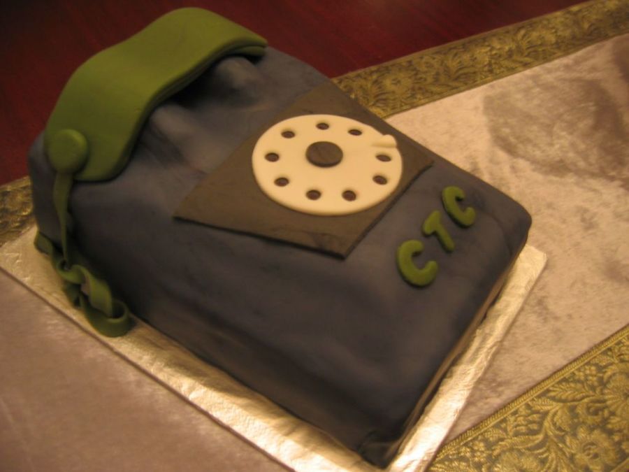 cake for ctc telephone company. made of square cakes and used trimmings to create bumps for phone hooks. covered in fondant.