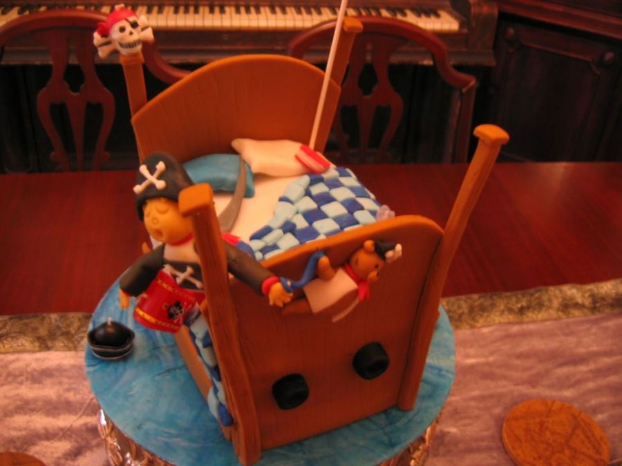 one of my fave cakes ever from a design book i have. changed it up a little and added pirate candles etc... so much fun. not nearly as hard as it looks! i love the pirate cannons coming out of the foot of the bed. now make varying designs of this for children and just customize it for what they are dreaming of.