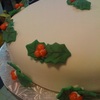 My Christmas present to my Mom. All from scratch. White Cake.Buttercream frosting, Marshmallow Fondant. The Holly leaves are also made of Marshmallow Fondant.